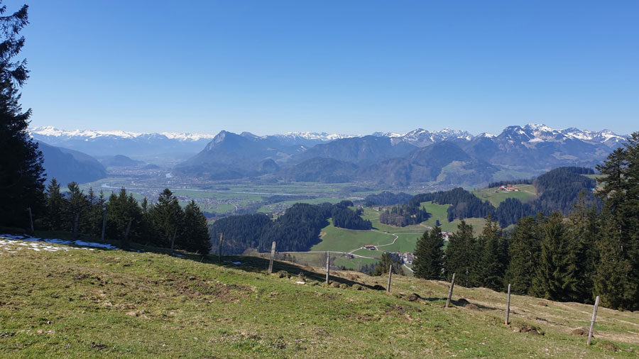Wildbichler Alm (1040 m) talwärts. Auf dem aussichtsreichen Weg haben wir stets den Blick ins Inntal und zu den schneebedeckten