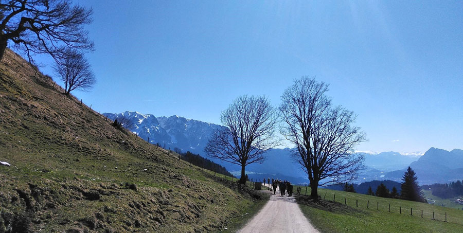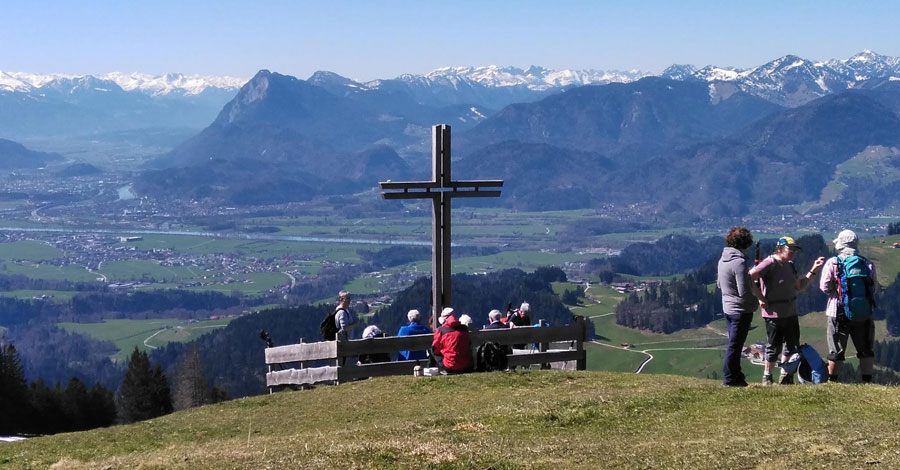 bringt uns zur Karspitze (1229 m) mit Kreuz und kleiner Kapelle. Nach einer kurzen Gipfelpause schlendern wir weiter über die
