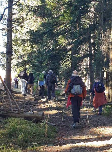 steilen Hohlweg bis zu einer Forststraße, der wir eine Weile folgen. Nach einem kurzen Waldweg erreichen wir das freie