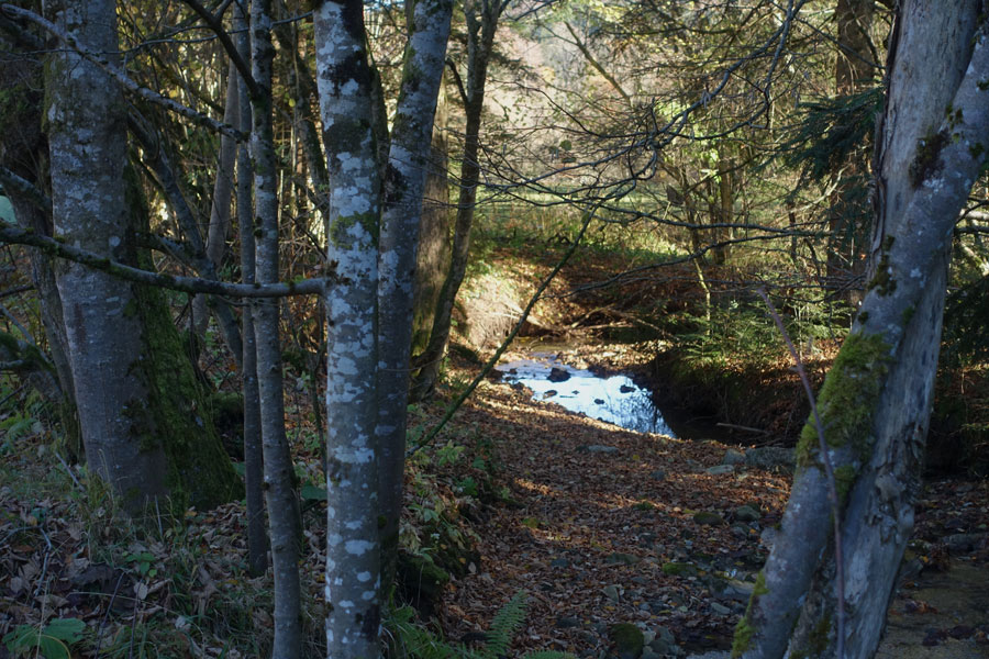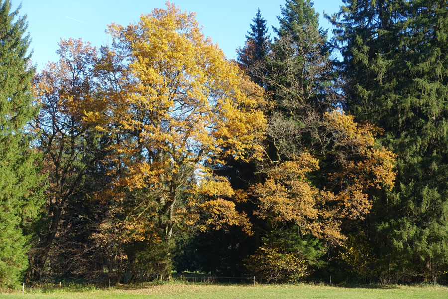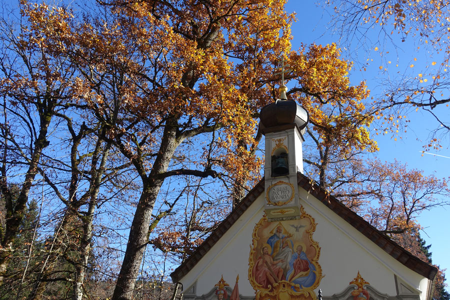 Über die Nordseite steigen wir anschließend ab. Es geht entlang dem Dürnbach. Herbstlich gefärbten Bäumen säumen unseren Weg