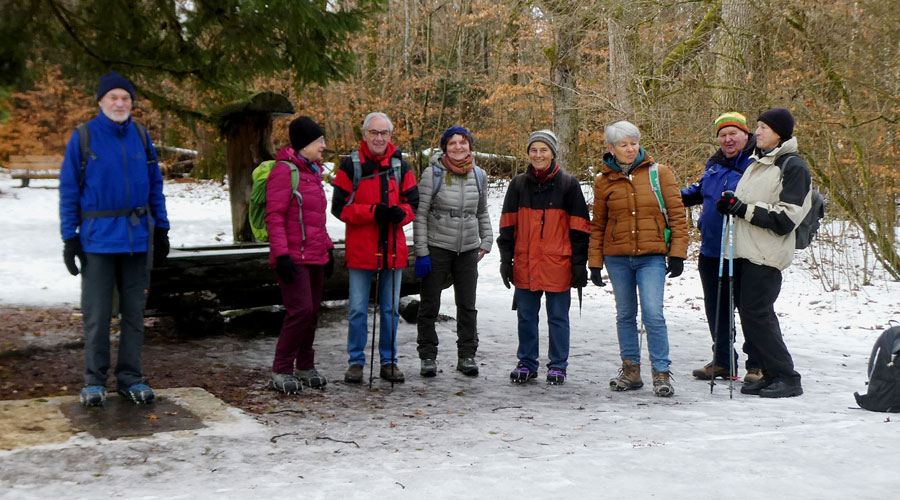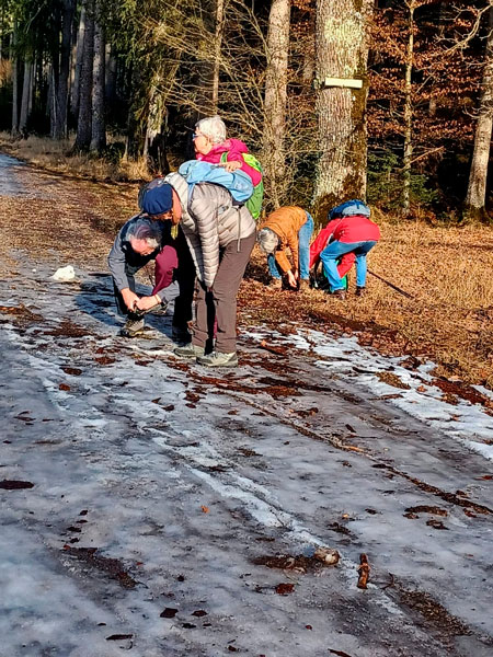 auf bis zu 10 Grad gestiegen. So sind Spikes oder zumindest Wanderstöcke für unsere elf Kilometer lange Wanderung sehr