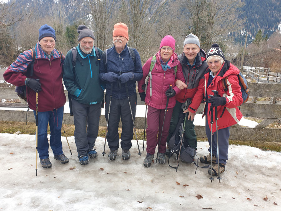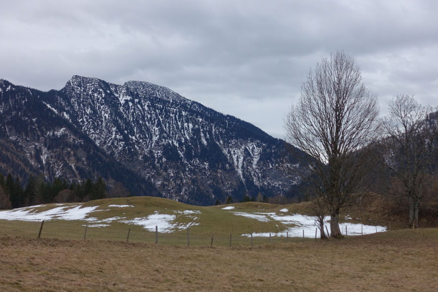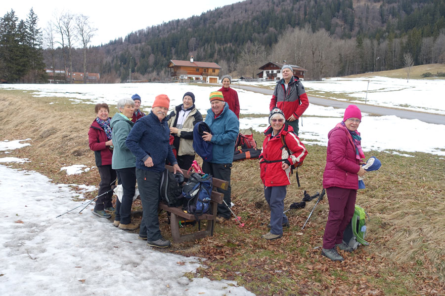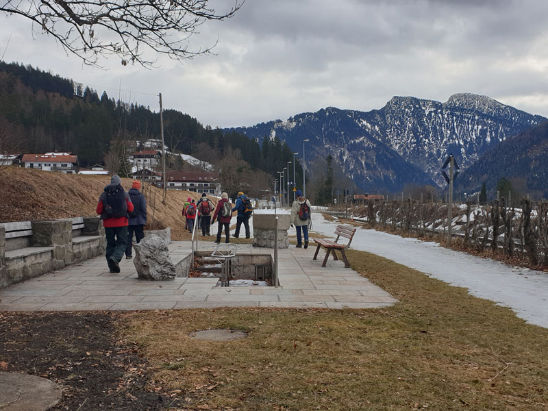 Schnee- und eisfrei geht es bergauf nach Hochkreut auf 959 Meter. Der Gasthof ist zur Zeit im Winterschlaf. Wir machen