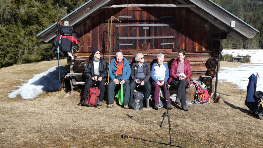 den Startlöchern für den Frühling steht. Im Schatten des Königstands legen wir dann Grödeln an, da die Forststraße noch