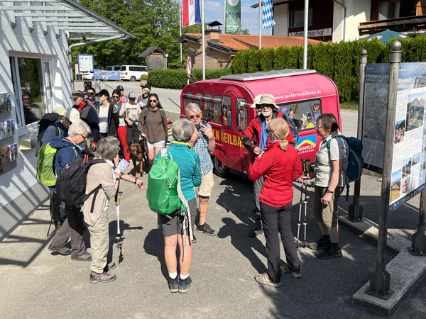 fünfzehn Wanderer uns von der Tragfähigkeit der Seilbahn überzeugen und kräftesparend bis zur Mittelstation fahren.
