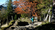 geprägt. Wir klettern durch enge Felsbrocken. Dann endet der Wald und gibt den Blick frei auf den Gipfelhang. Wir steigen