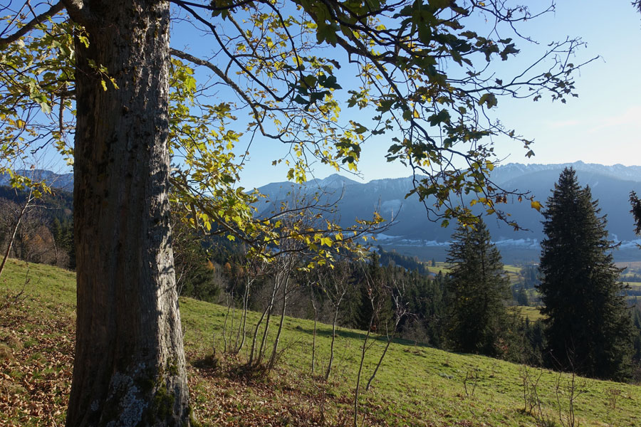 Bei der Gipfelbrotzeit geht der Blick hinüber zu den Ammergauer Bergen.