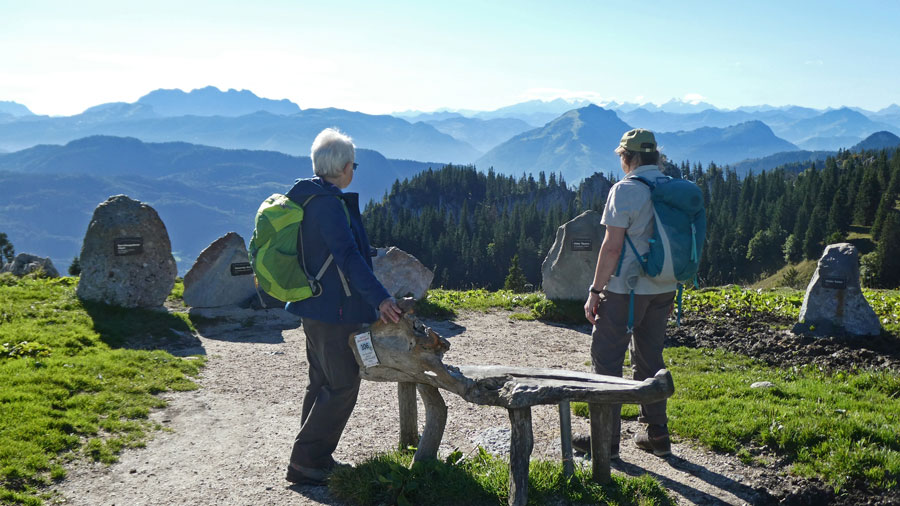 und die vielen Wirtshäuser und Hütten auf dem Almengebiet 200 Meter unter den Felsspitzen der Kampenwand laden schon am