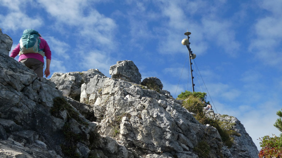 Meter hohen, eisernen Gipfelkreuz überbrückt. Das Erlebnis auf dem Gipfel zu stehen und die Aussicht zu genießen ist