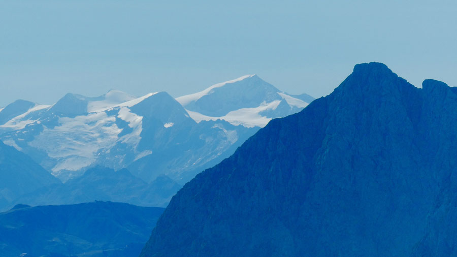 Ostgipfel zu machen. Zunächst geht es auf einem steilen, ausgefransten Schotterweg in eine Scharte. Linker Hand der Scharte