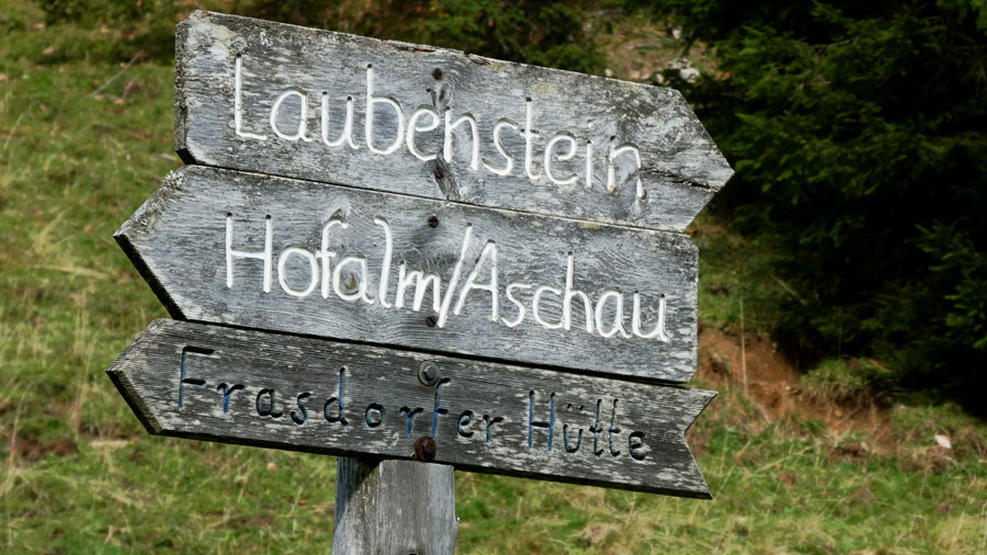 Wo geht es zum Laubenstein? Auf keinem der vielen Schilder des Taferlbaums kurz nach dem Parkplatz
