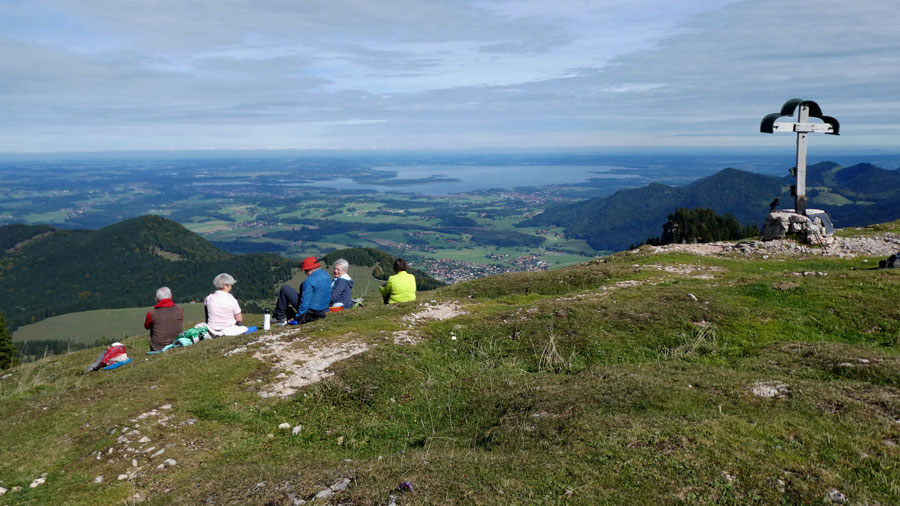 Aussicht auf den Chiemgau sensationell. Und auch der Hochries und die Kampenwand grüßen herüber.