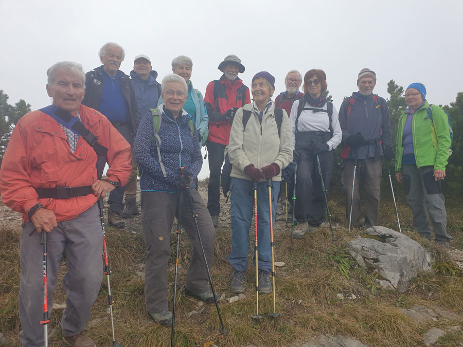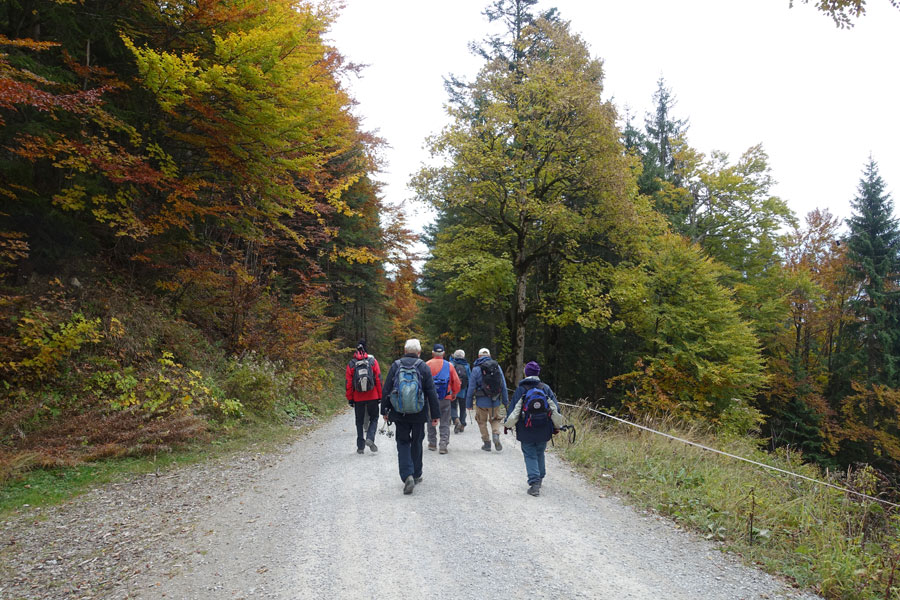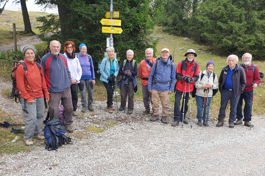 leider eine geschlossenen Wolkendecke. Trotzdem wandern wir - das Dutzend ist wieder mal voll - frohgemut auf der