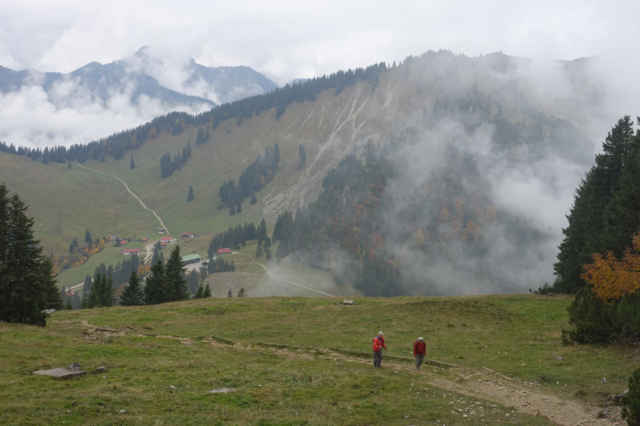 Wir steigen wieder ab, treffen an der Firstalm unsere Bergfreunde und wandern gemeinsam  fröhlich ratschend durch den