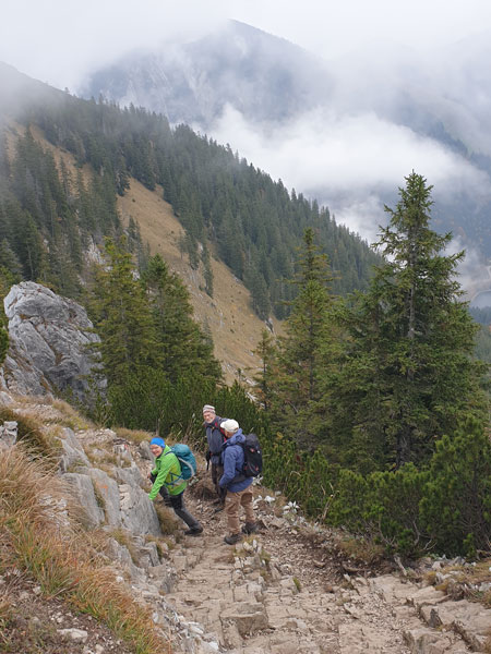 rechts ab und steigen den Serpentinenpfad hinauf zum West- oder auch Winter-Gipfel der Brecherspitze. Das ist unser