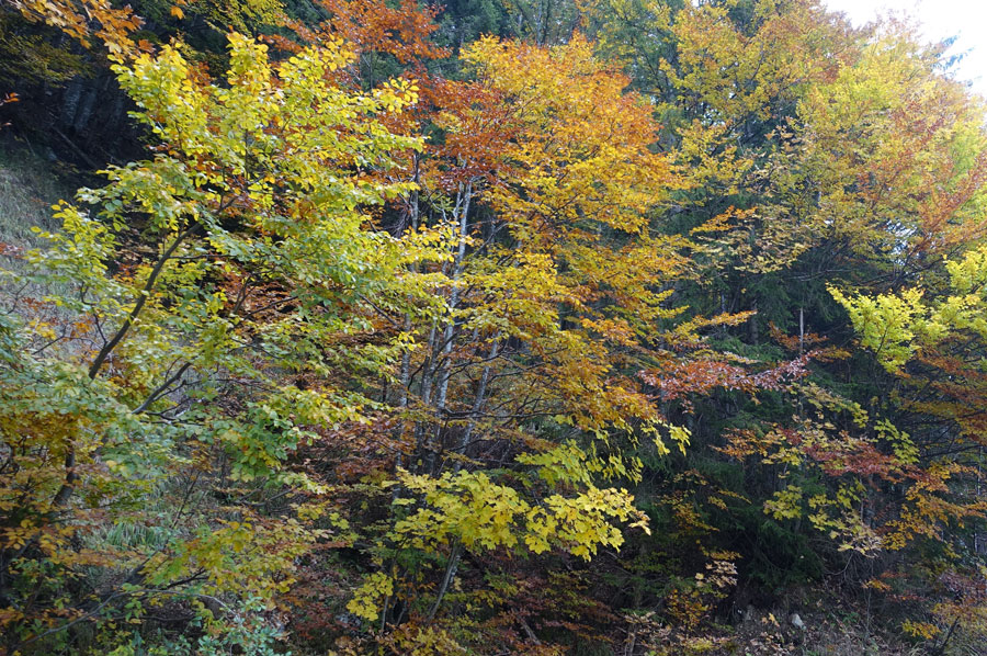 herbstlich gefärbten Wald wieder zurück zum Spitzingsattel.