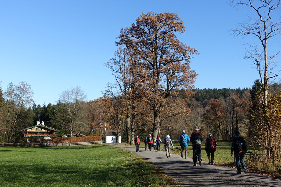 Über die Nordseite steigen wir anschließend ab. Es geht entlang dem Dürnbach. Herbstlich gefärbten Bäumen säumen unseren Weg
