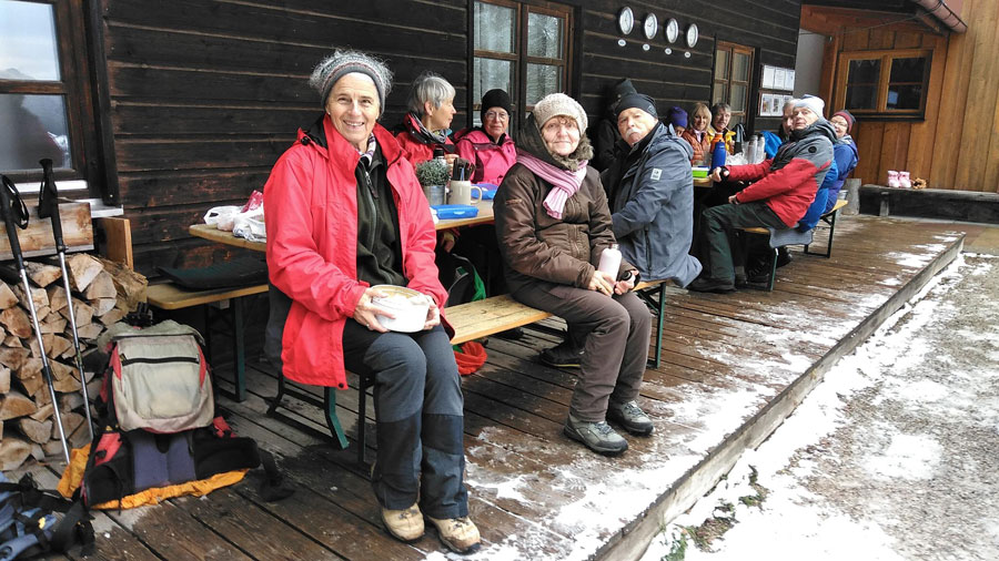 Bei Kaffee / Bier und Kuchen lassen wir die Winterwanderung gemütlich ausklingen.