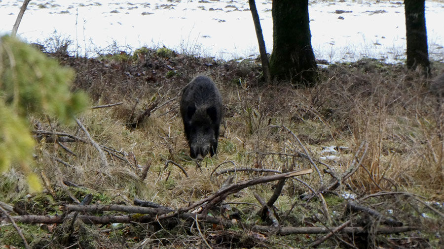 Wir erleben aber noch mehr Überraschungen. Zuerst entdecken wir einen Keiler neben der Schneise und ein paar 100 Meter