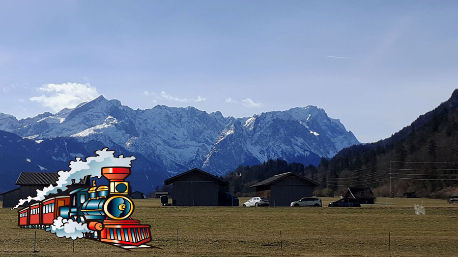 Die Wanderung beginnt vom Bahnhof Farchant mit einem tollen Blick auf Deutschlands höchstem Berg, die Zugspitze.