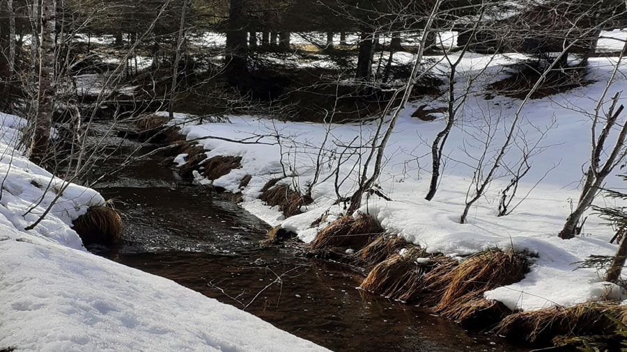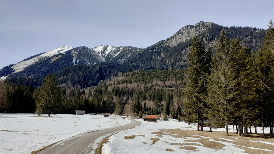 den Startlöchern für den Frühling steht. Im Schatten des Königstands legen wir dann Grödeln an, da die Forststraße noch