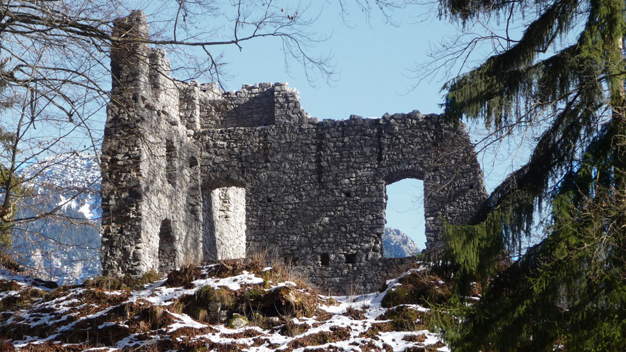 Burg Werdenfels noch übrig ist. Die Ruine bietet erneut einen herrlichen Blick auf das Wettersteingebirge und auf den