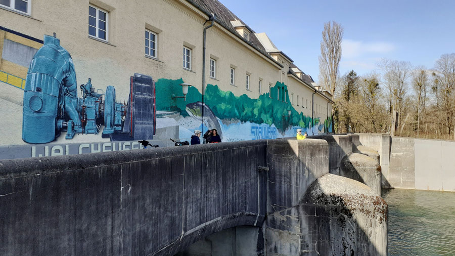 und die Isar, die wir beim Tivoli Kraftwerk überqueren. Bei Engelschalking schwenken wir nach Süden, unterqueren nach Zamdorf
